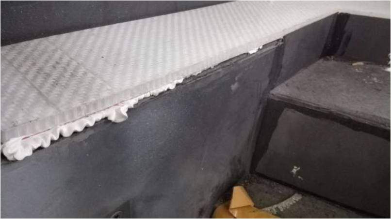 尽管PP聚丙烯材料具有强度大、轻量化的特点,但由于这种材料的表面能极低,普通胶粘剂的附着力根本达不到粘接要求,这使得PP材料的粘接一度成为世界性难题困扰着全球范围内的汽车制造商。宇通客车多次尝试无果,最终通过行业渠道了解到,荷兰赛佰SABA在十五年前开发了SABA 4518底涂胶,在塑料及复合材料粘接方面有显著优势,双方开始建立起联系。荷兰赛佰SABA利用自身的产品优势,依据宇通T7对地板的个性化需求,为宇通客车提供了PP材料粘接的系统解决方案:首先,使用48清洗剂去除粘着在PP塑料表面的污物;之后涂覆PP塑料专用4518底涂,激活PP塑料表面,为粘合做准备; 4518的最佳活化效果出现在涂覆后15-30分钟之间,依据现场温湿度,掌握好最佳操作时间,将SABA胶水喷涂于需要粘合的材料表面,再将两块材料的粘合部位对准,不需其他外力直接粘合。